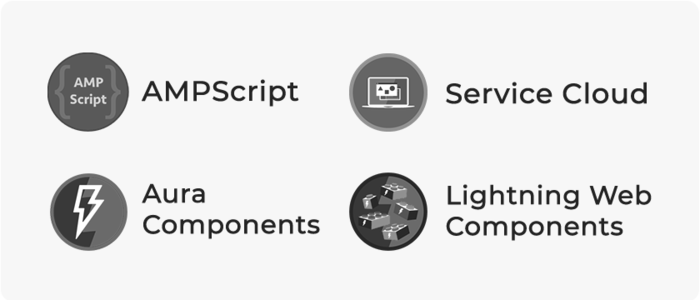 Apex Lightning Web Components, Aura Components, Visualforce, Marketing Cloud Dataweave